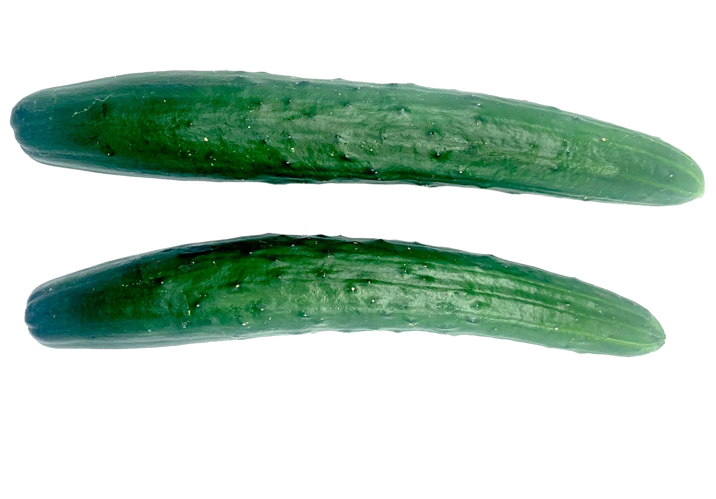 Japanese cucumbers are generally small to medium-sized varietals, averaging 15 to 30 centimeters in length, and have a narrow and elongated shape with slightly tapered, rounded ends. Each cucumber can appear straight to curved, and the skin ranges in texture from smooth, mildly bumpy, to ridged, depending on the specific variety. Japanese cucumbers have thin, tender, and edible skin with a dark green to forest green hue.