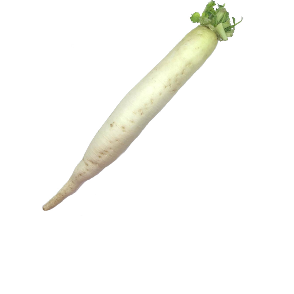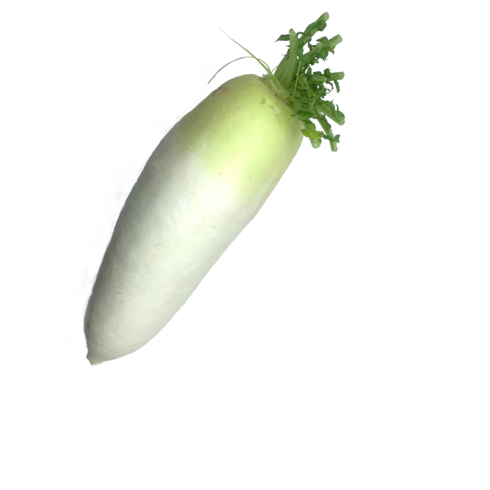 Daikon, also known as white radish, Japanese radish, and lubok,. The vegetable resembles a large white plump carrot and is commonly eaten raw, cooked, or pickled.