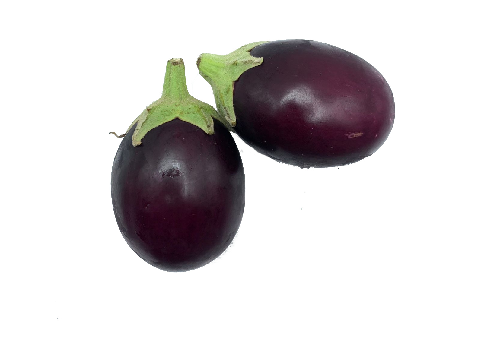 Indian eggplants are small and oval, averaging 5-7 centimeters depending on maturity. This egg-shaped fruit has a glossy, smooth, and medium-thick dark purple outer skin.. When cooked, Indian eggplants offer a mild flavor with sweet notes and a creamy texture.