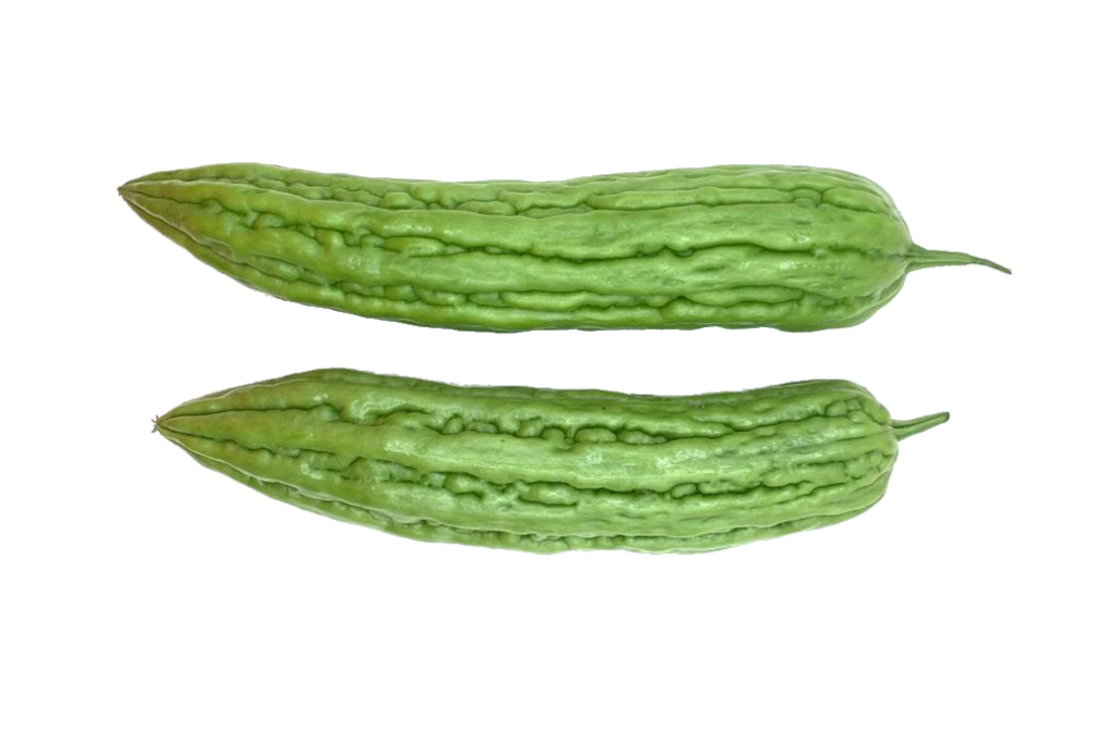 Bitter melons are small to medium gourds, averaging 6 to 30 centimeters in length, and have a long and slender, oblong shape with slightly tapered ends. The gourd's surface will vary depending on the specific type, ranging from deeply creased, smooth, pale green, and ridged to rough, dark green, and heavily textured with warts and bumps. The gourd’s skin may also exhibit a waxy layer, and some rarer types of Bitter melon showcase a white hue. Underneath the thin skin, the flesh is crisp, watery, and pale green, encasing a central cavity filled with spongy pith and large, cream-colored seeds. Bitter melons are harvested when they are young and green, containing a sharp, astringent, and vegetal flavor. The gourds are also selected when they display a green coloring with a faint yellow hue, an indication of further maturity, rumored to contain a slightly milder, bitter, and acidic flavor.
