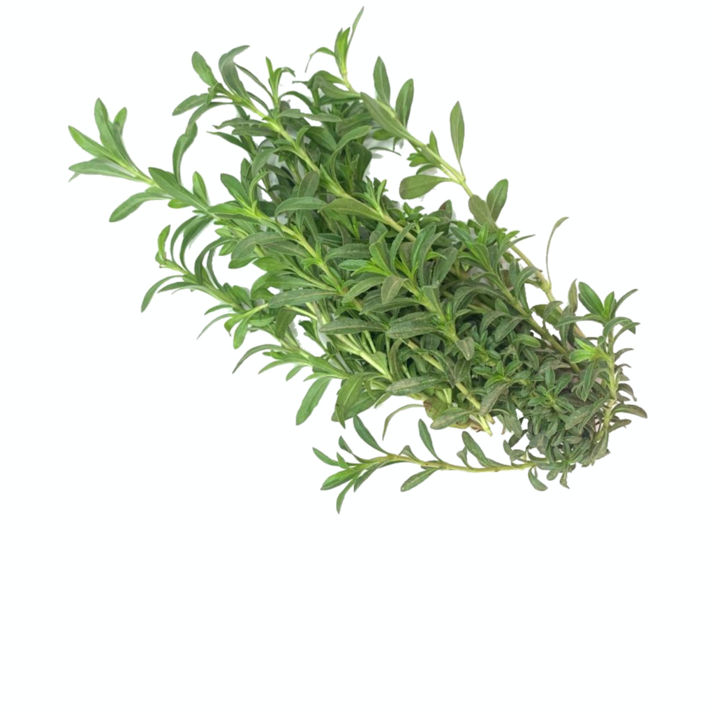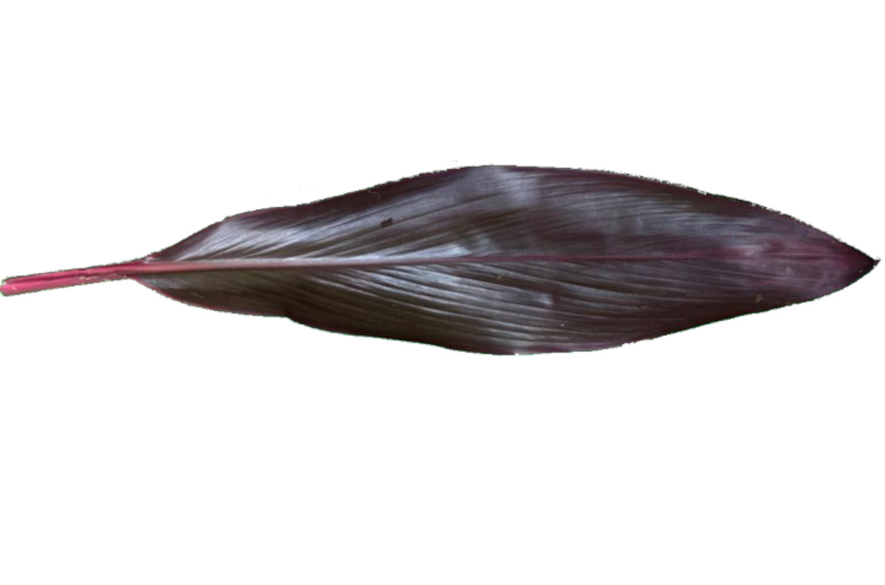 Banana leaves are large in size, ranging from 30 to 50 centimeters in width and reaching up to two meters in length, and have a wide-spreading, elongated nature. There are approximately 8 to 12 leaves per plant, and each leaf is broad, flat, and cylindrical with rounded edges. Banana leaves are waterproof, and a central midrib runs the length of the leaf, creating two laminas, or leaf halves, found on either side of the midrib. The leaves are not consumed and are discarded after cooking. Banana leaves are used as a food wrap and impart a subtly sweet, grassy, green, and vegetal flavor.