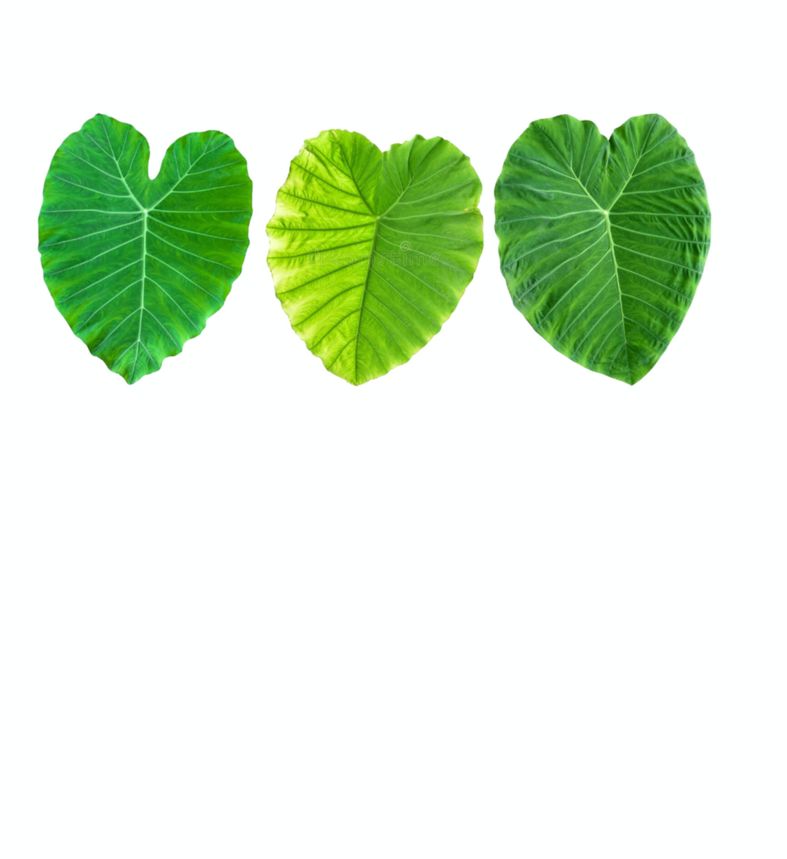 Taro leaves are medium to large in size and broad and heart-shaped, averaging up to forty centimeters in length and twenty centimeters in width. When cooked, the leaves are tender and have a mild, nutty flavor with a slightly metallic, iron taste.