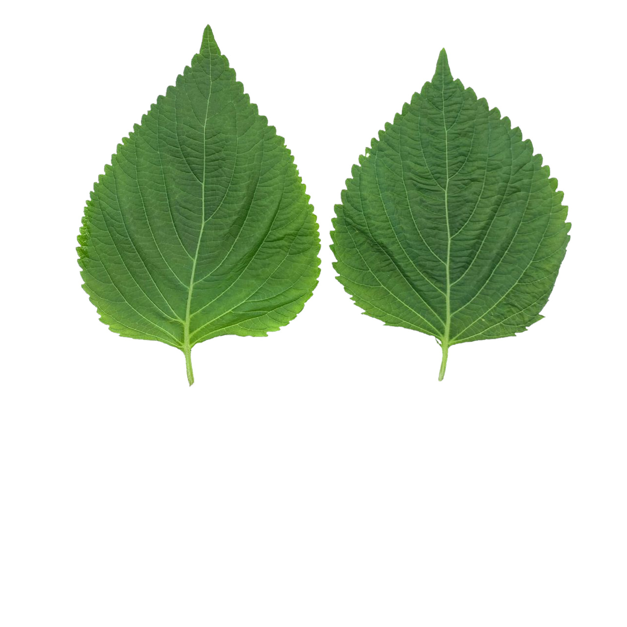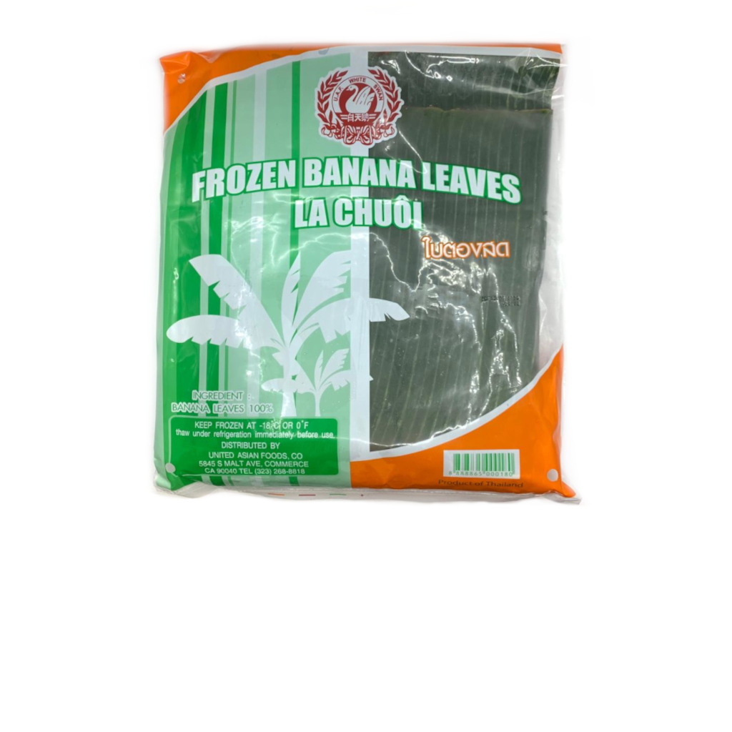 Banana leaves are large in size, ranging from 30 to 50 centimeters in width and reaching up to two meters in length, and have a wide-spreading, elongated nature. There are approximately 8 to 12 leaves per plant, and each leaf is broad, flat, and cylindrical with rounded edges. Banana leaves are waterproof, and a central midrib runs the length of the leaf, creating two laminas, or leaf halves, found on either side of the midrib. The leaves are not consumed and are discarded after cooking. Banana leaves are used as a food wrap and impart a subtly sweet, grassy, green, and vegetal flavor.