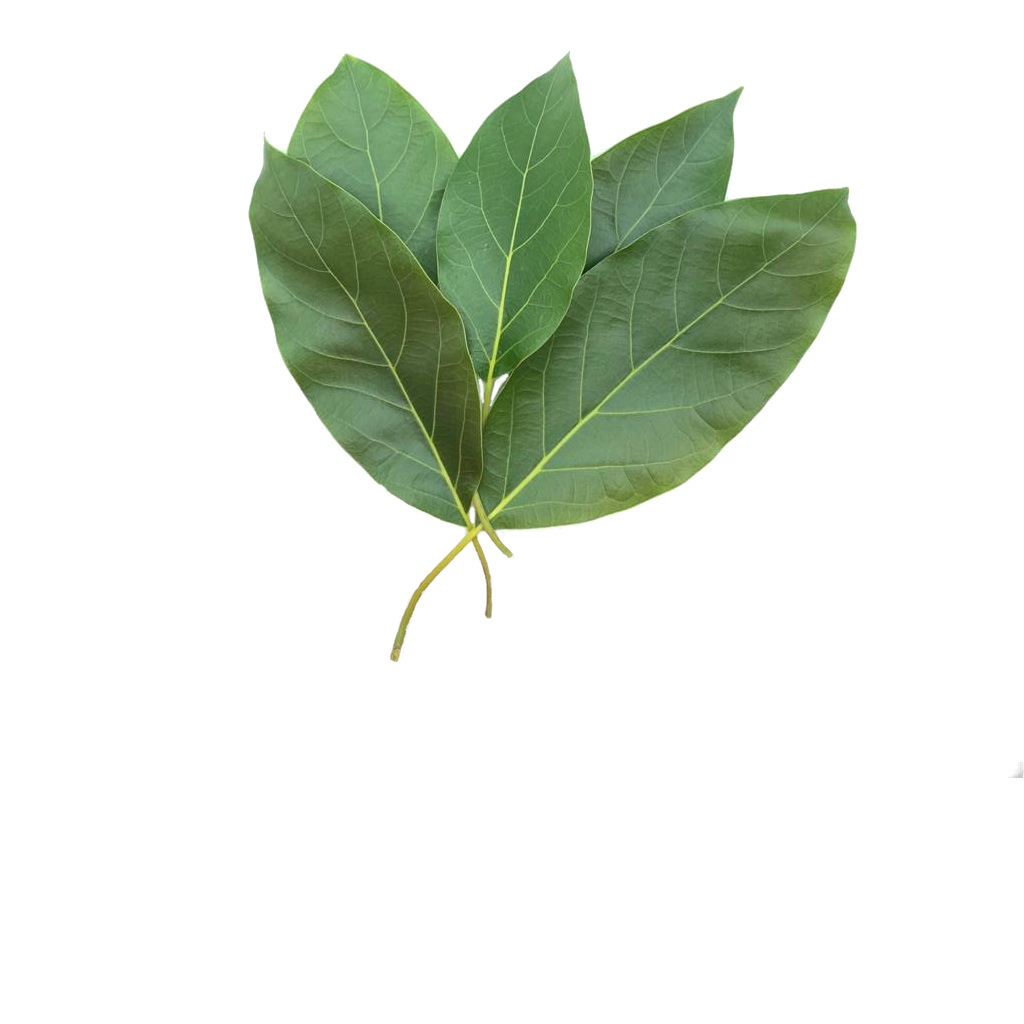 Banana leaves are large in size, ranging from 30 to 50 centimeters in width and reaching up to two meters in length, and have a wide-spreading, elongated nature. There are approximately 8 to 12 leaves per plant, and each leaf is broad, flat, and cylindrical with rounded edges. Banana leaves are waterproof, and a central midrib runs the length of the leaf, creating two laminas, or leaf halves, found on either side of the midrib. The leaves are not consumed and are discarded after cooking. Banana leaves are used as a food wrap and impart a subtly sweet, grassy, green, and vegetal flavor.